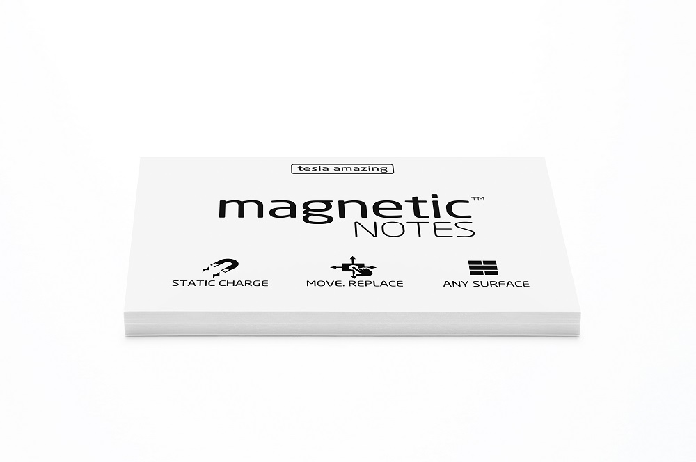 Magnetic NOTES are sticky notes for the 21st century. It’s based on a unique patented technology called statically charged polypropylene film, which provides double-sided, full-coverage stick to almost any smooth, dry surface.