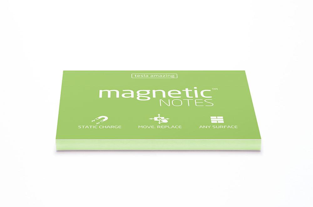 Magnetic NOTES are sticky notes for the 21st century. It’s based on a unique patented technology called statically charged polypropylene film, which provides double-sided, full-coverage stick to almost any smooth, dry surface.