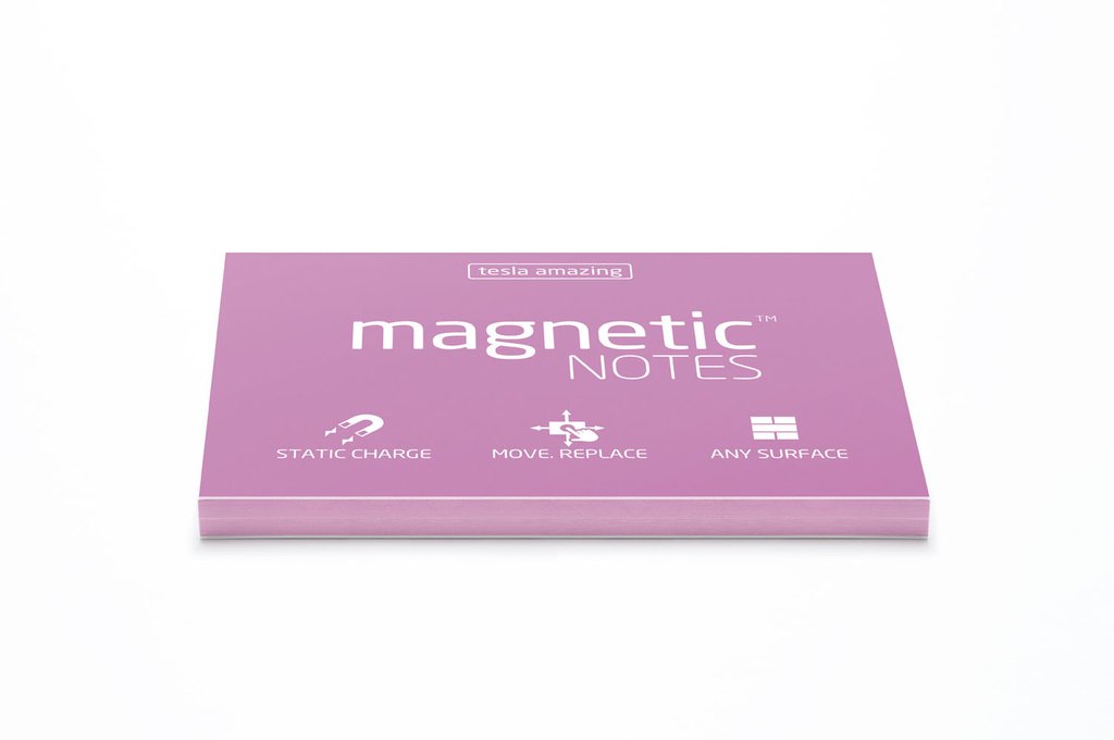 Magnetic NOTES are sticky notes for the 21st century. It’s based on a unique patented technology called statically charged polypropylene film, which provides double-sided, full-coverage stick to almost any smooth, dry surface.