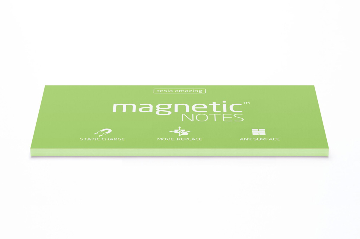 Magnetic NOTES are sticky notes for the 21st century. It’s based on a unique patented technology called statically charged polypropylene film, which provides double-sided, full-coverage stick to almost any smooth, dry surface.