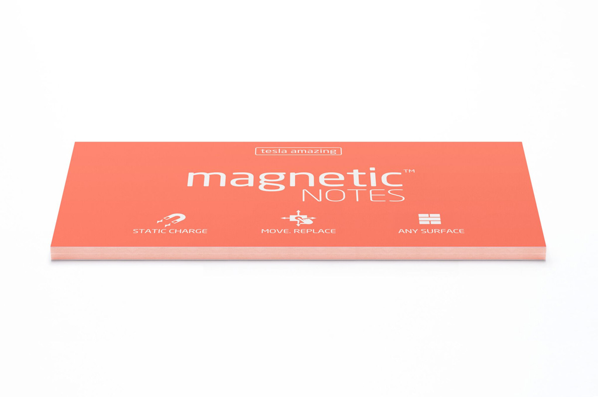 Magnetic NOTES are sticky notes for the 21st century. It’s based on a unique patented technology called statically charged polypropylene film, which provides double-sided, full-coverage stick to almost any smooth, dry surface.