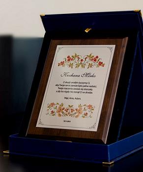 • A wooden foundation with an affixed plate is an aesthetic and very popular way of handing out various types of diplomas, certificates, awards, congratulations, wishes, thanks etc. etc.
