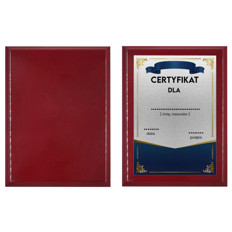 • Maroon wooden bases with an attached plaque are an aesthetic and popular way to present various types of diplomas, certificates, awards, congratulations, wishes, thanks, etc.