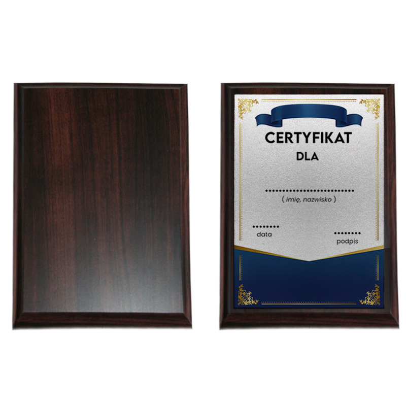 • A wooden foundation with an affixed plate is an aesthetic and very popular way of handing out various types of diplomas, certificates, awards, congratulations, wishes, thanks etc. etc.