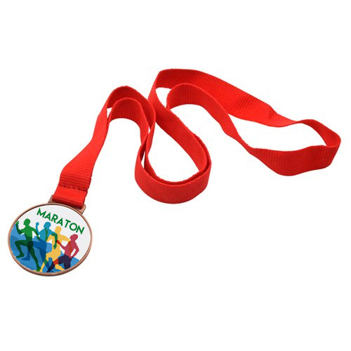 Medal with a red ribbon for sublimation and engraving