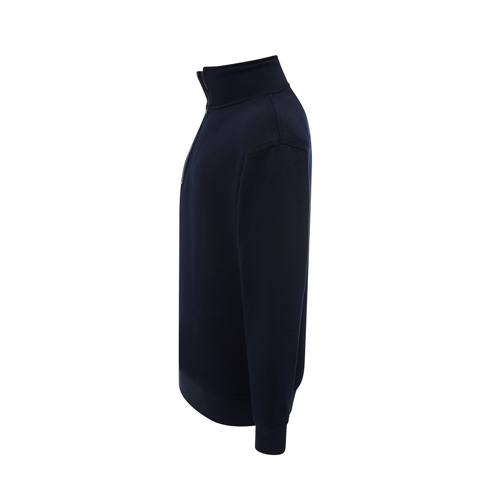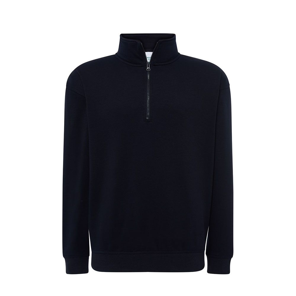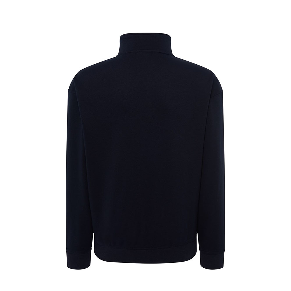 - Universal men's sweatshirt with a stand-up collar and long sleeves finished with a welt
