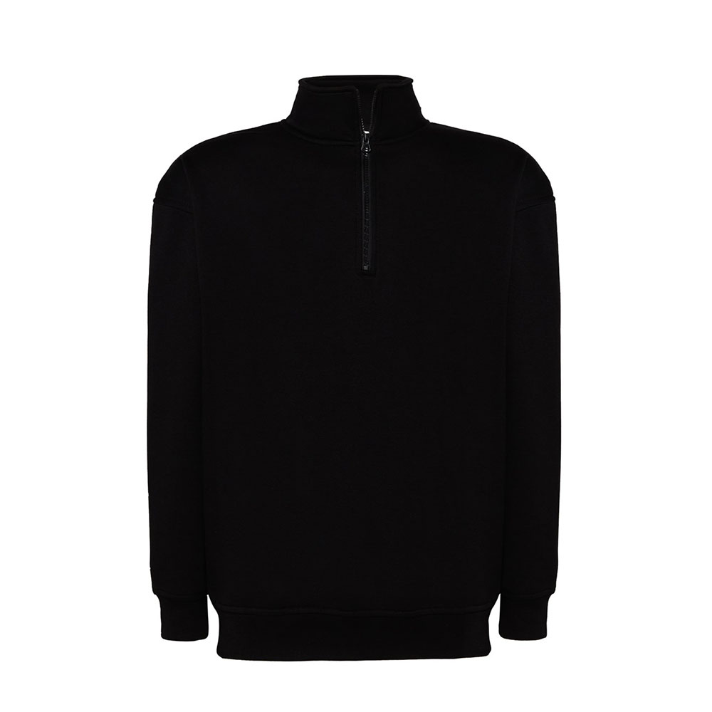 - Universal men's sweatshirt with a stand-up collar and long sleeves finished with a welt