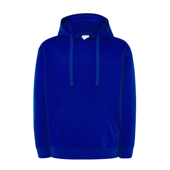 Smooth, blue, hoodie men's blouse for printing with a sewn-on pocket (kangaroo / CVC )