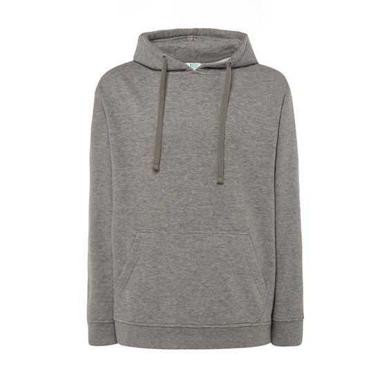 Smooth, grey, hoodie men's blouse for printing with a sewn-on pocket (kangaroo / CVC )