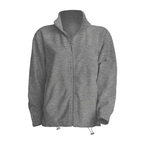 A smooth, grey melange fleece sweatshirt is a great idea for a universal outfit for an evening walk as well as for work in cold days.