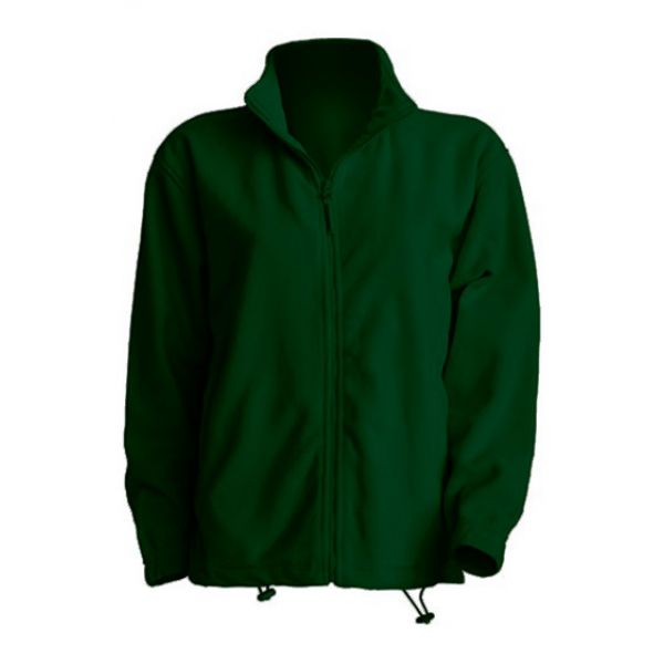 A smooth, bottle green fleece sweatshirt is a great idea for a universal outfit for an evening walk as well as for work in cold days.