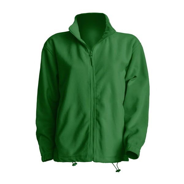 A smooth, green fleece sweatshirt is a great idea for a universal outfit for an evening walk as well as for work in cold days.