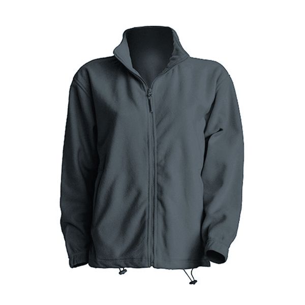 A smooth, dark grey fleece sweatshirt is a great idea for a universal outfit for an evening walk as well as for work in cold days.