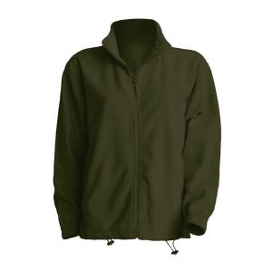 A smooth, olive green fleece sweatshirt is a great idea for a universal outfit for an evening walk as well as for work in cold days.