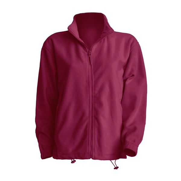 A smooth, dark red (burgundy) fleece sweatshirt is a great idea for a universal outfit for an evening walk as well as for work in cold days.