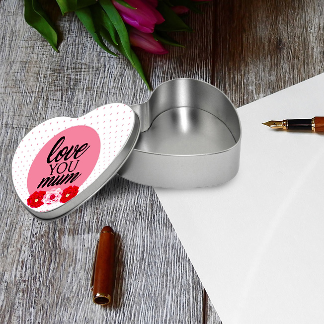 • The heart-shaped chocolate box has an aluminum insert placed on the lid of the breakfast package, covered with polyester, thanks to which it is possible to mark it by sublimation