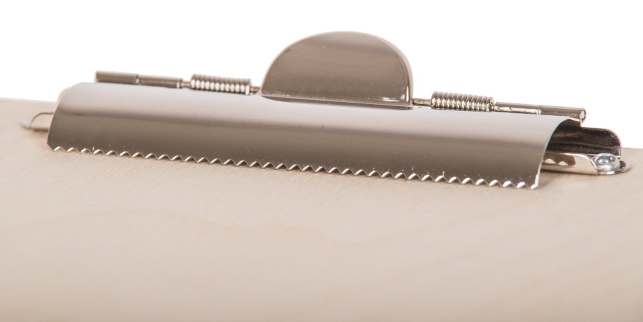These include universal clipboard mechanisms, also known as archival paper clips (for documents). Small clamps for clipboards with spring mechanisms vary in their design. There are flat clips for attaching to surfaces (e.g., walls or clipboards), which securely hold sheets of paper. Popular options also include "bulldog" clips that bind stacks of notes, files, banknotes, and other documents, which are also useful for sealing an open package or bag to secure its contents. Clamps and office clips make it easy to manage documents, streamlining workflow. A clipboard mechanism ensures a strong attachment of documents to the board, allowing for convenient use outside the office.