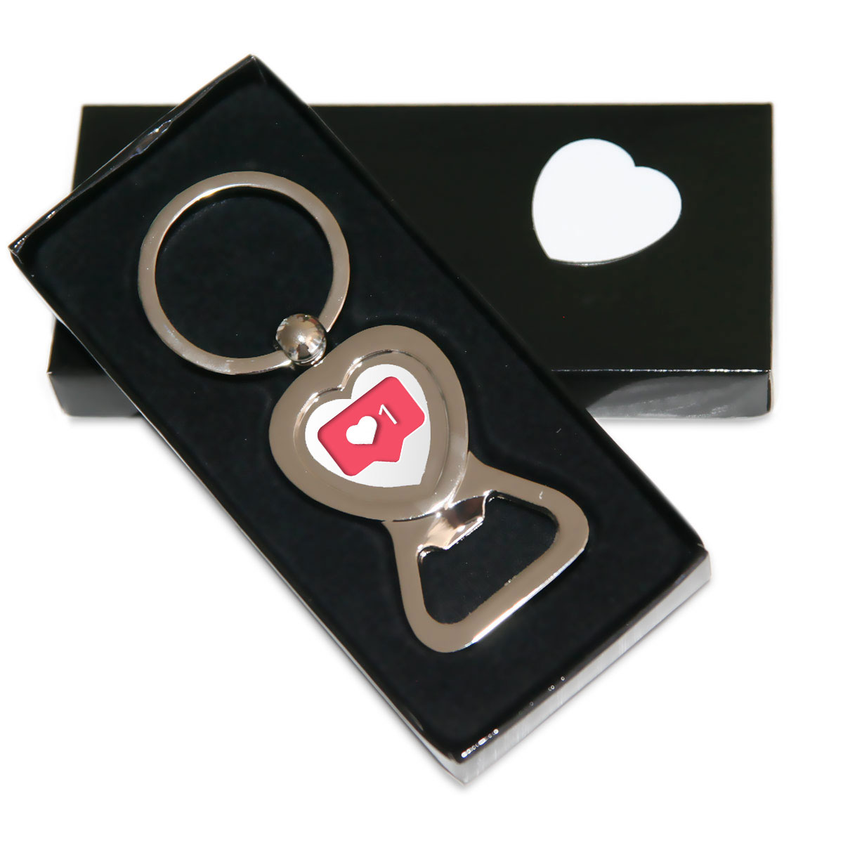 Silver metal keychain with heart-shaped for sublimation and engraving and bottle opener