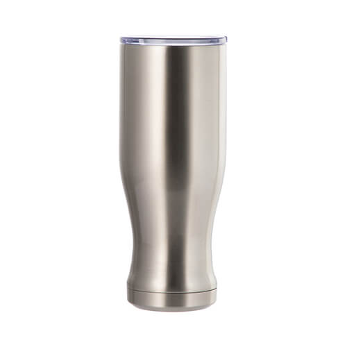 • Shiny, metal mug for sublimation without handle, with plastic lid and double wall