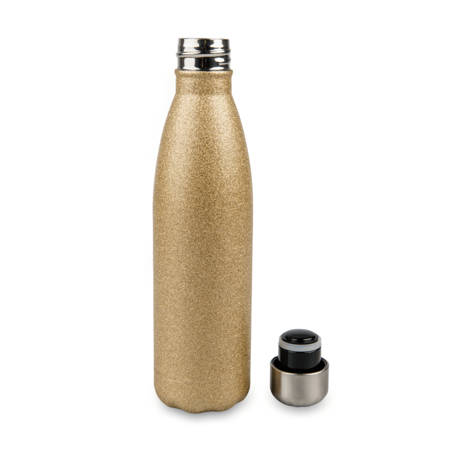 Gold glitter, metal thermal bottle for sublimation is a perfect solution for everyone who likes to enjoy their favorite hot drink for a long time. The metal thermal bottle is resistant to harsh conditions, so it will be perfect for people who like sports and exercise. Tourist bottle for drinks will be great not only on a bicycle trip but also at the gym or a trip. Solid metal construction makes the water bottle withstand even the most extreme expeditions. Tight closure guarantees that your favorite coffee will keep its temperature for a long time. The white thermos keeps your drink warm for hours.