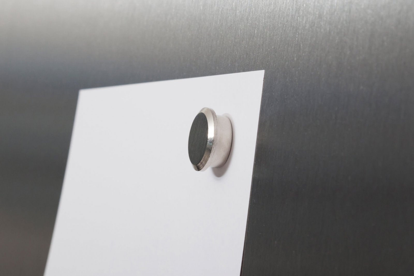 magnets and magnetic accessories . The most popular are ordinary ferrite or ceramic magnets, which have a standard force of attraction. There are also more and more neodymium magnets, mainly containing neodymium, iron and boron (NdFeB). Neodymium magnets are very strong - even ten times more than regular ferrite magnets. This feature makes them vey useful also in the mechanical, electronic and many other industries. They apply also in offices: to stick cards, information on magnetic boards or placing advertisements.