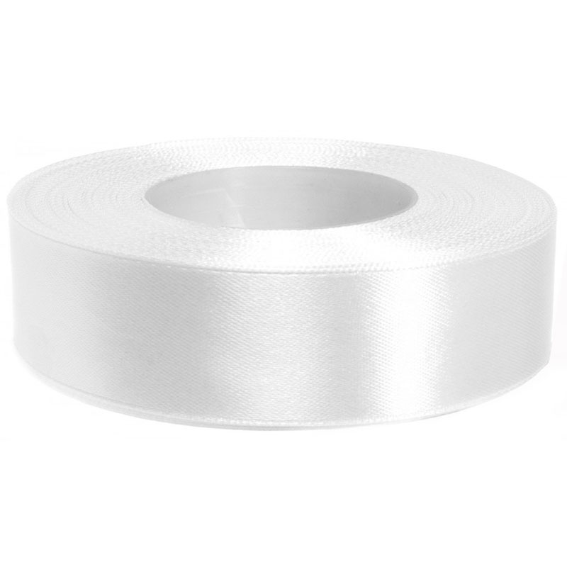 White satin ribbon for printing on the TSC TE200 thermal transfer printer. The white printable ribbon is 2.5 centimeters and wide and is wound on a 50 meter roll.