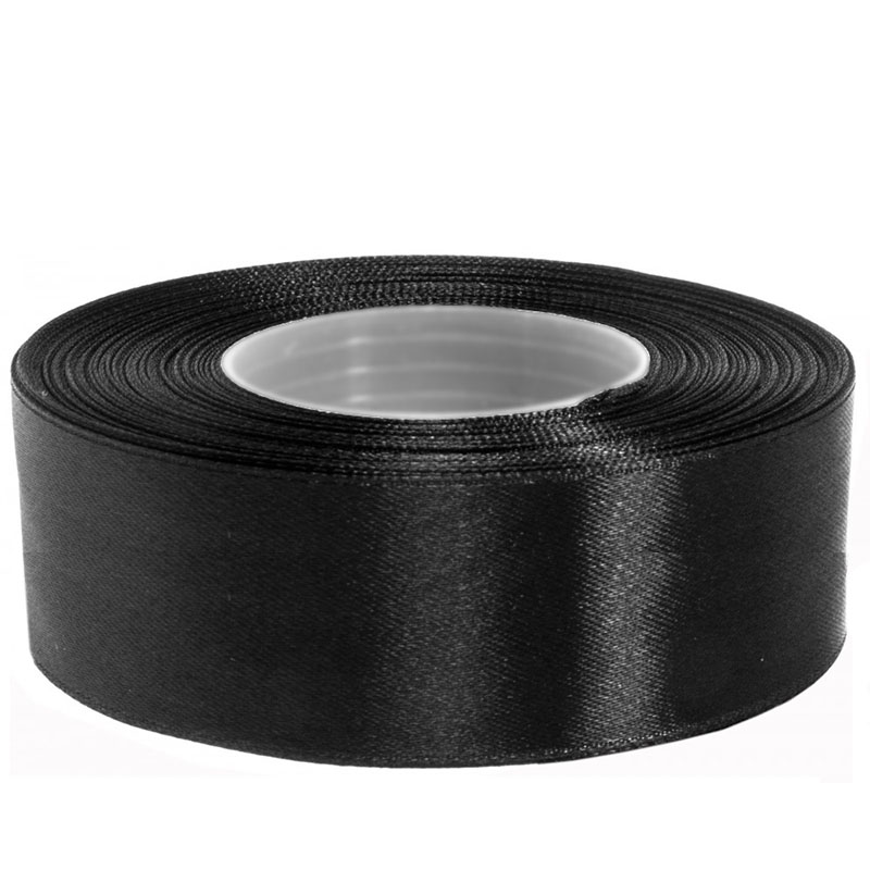 Black satin ribbon for printing on the TSC TE200 thermal transfer printer. The black printable ribbon is 2.5 centimeters and wide and is wound on a 50 meter roll.