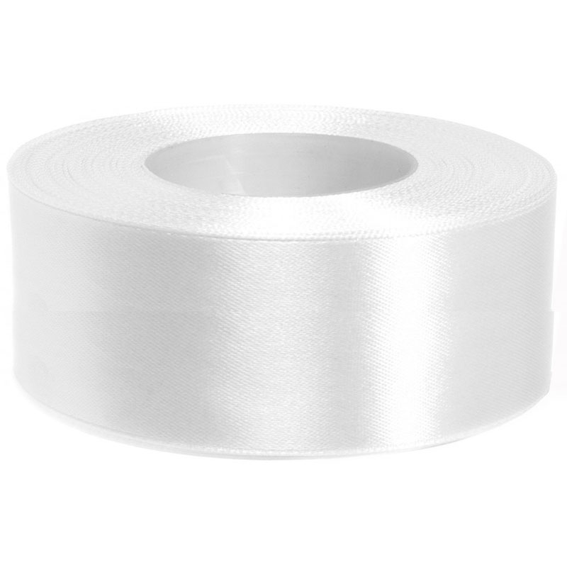 White satin ribbon for printing on the TSC TE200 thermal transfer printer. The white printable ribbon is 10 centimeters and wide and is wound on a 50 meter roll.