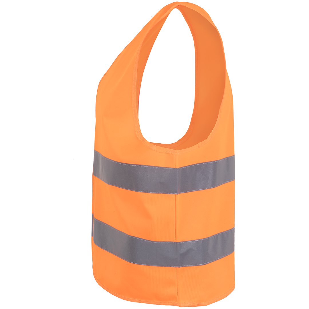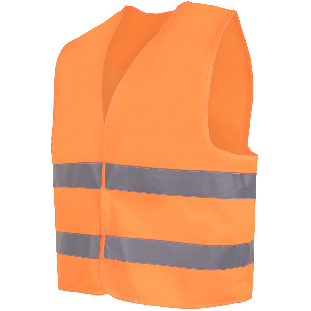 • Reflective vest (fluorescence) has 2 horizontal reflective stripes, very well visible from a long distance