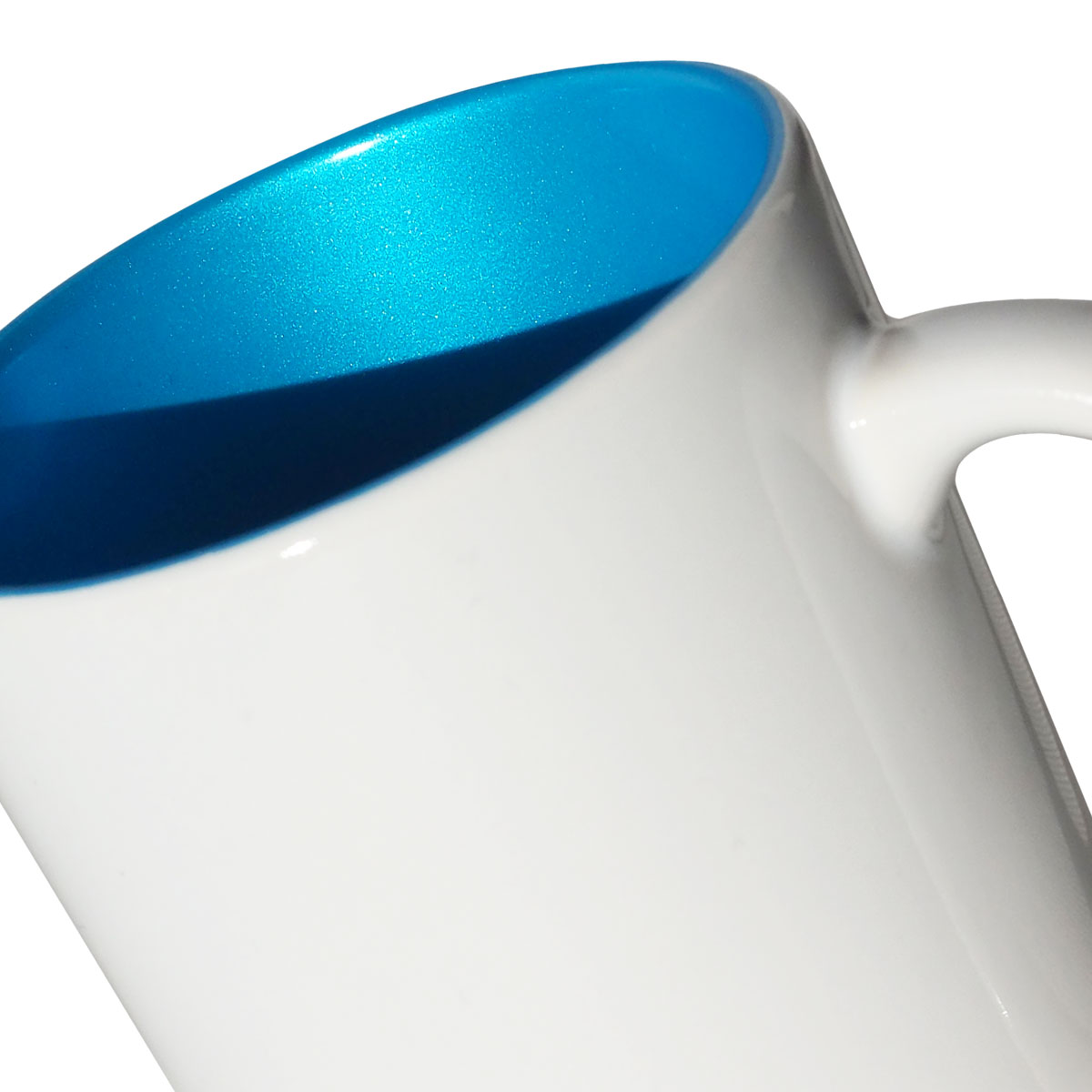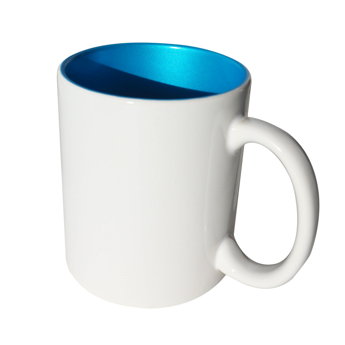 White mug, pearlized inside, coated with a special polyester for sublimation printout.