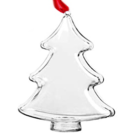 Transparent ball (christmas tree) with a red ribbon for self-assembly. To fill the bauble with a photo you have to download template to cut . Baubles dimensions: 120mm x 110mm