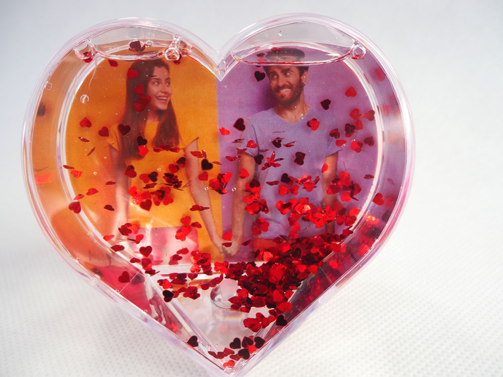 - Water Photoglobe - heart has shiny, red flakes - hearts inside