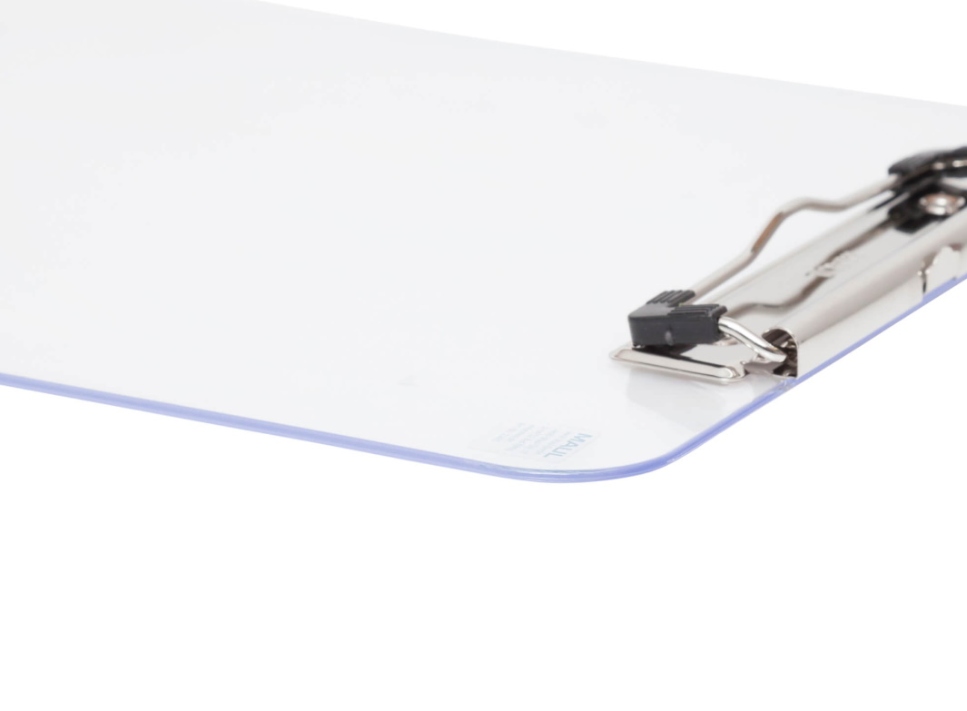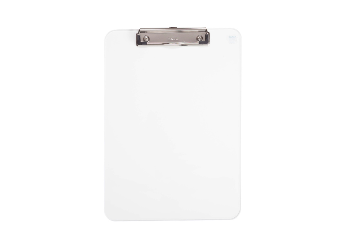 Clipboard from MAUL provides a stylish, functional way to write without the use of a desk. Flat clip makes this durable, transparent plastic clipboard space-efficient and easy to use. Clipboard includes a tab for hanging.