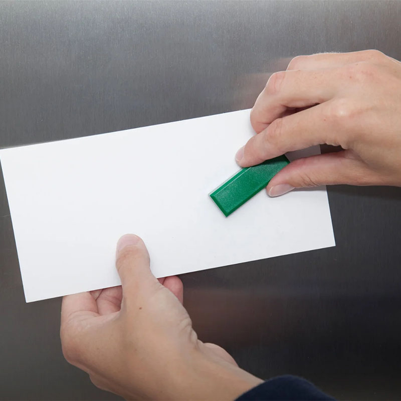 • Durable rectangular ferrite magnets in colorful plastic housings, size: 53 x 18 mm