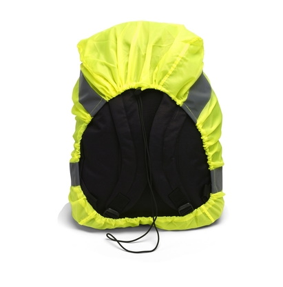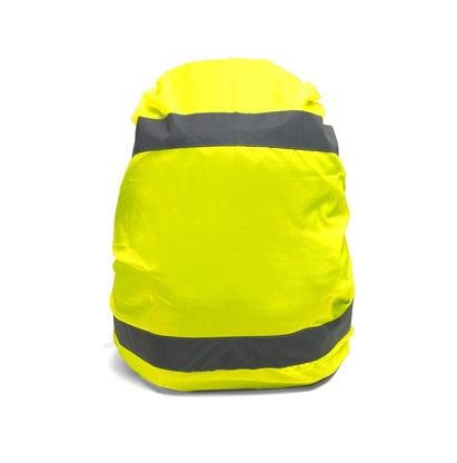 Backpack cover in bright color with reflective tape (for promotional use).