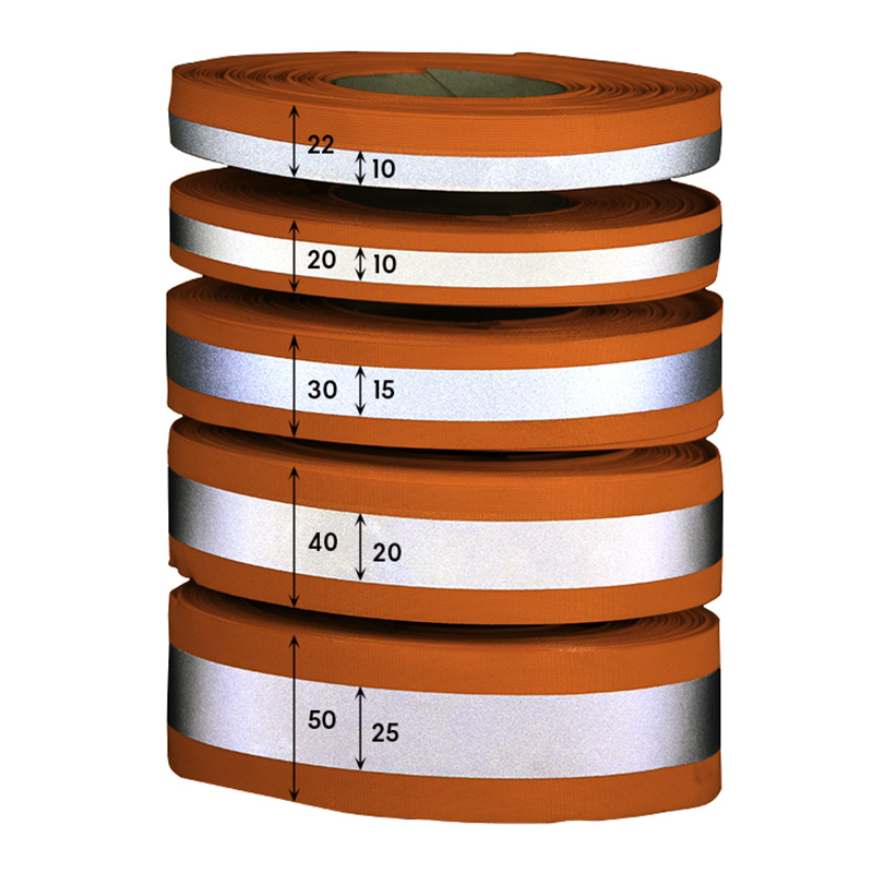 The fluorescent reflective tape consists of a fabric fluorescent strip in yellow or orange and a silver reflective tape incorporated in the middle. The product is intended for sewing onto various types of materials. With excellent reflective properties and a bright, fluorescent finish, the tape ensures maximum visibility in all lighting conditions.