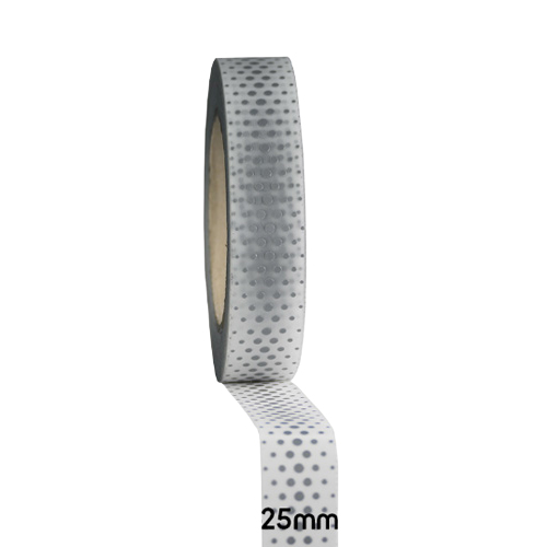 The tape is segmented (dots), which makes working clothes more comfortable, flexible and breathable. Dotted reflective tape is most often used for marking clothing with breathable properties, e.g. soft shell. The dotted tape easily stretches with the fabric.