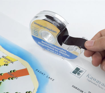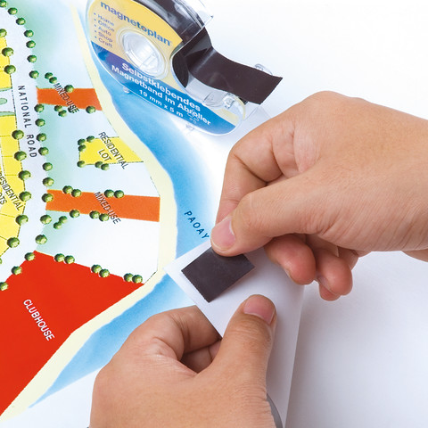 • Self-adhesive magnetic tape is placed in comfortable dispenser