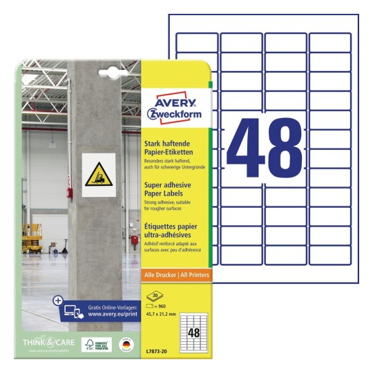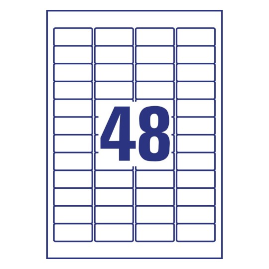 Paper labels are sold in packages of 20 sheets in A4 format (21 x 29.7 cm). Each sheet is 48 white paper stickers, label dimensions: 45,7 x 21,2 mm