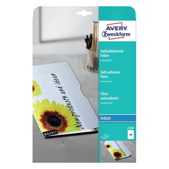 Self-adhesive polyester film for inkjet printers - 50 sheets Marka AVERY Grubość 170 µm Wymiary A4 Stock code