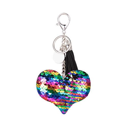 Sequin keychain with round plate for sublimation - rainbow heart (9x7,5cm)
