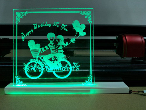 The engraving tool for Skycut plotters allows you to engrave on thin, soft plates, acrylic and plexiglass.