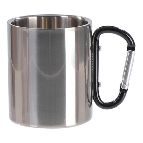 Stainless Steel with Black Carabiner Handle for Sublimation Mug, Engraving