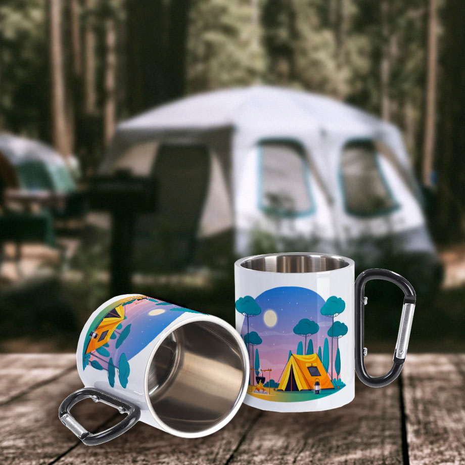 Stainless Steel with Black Carabiner Handle for Sublimation Mug, Engraving