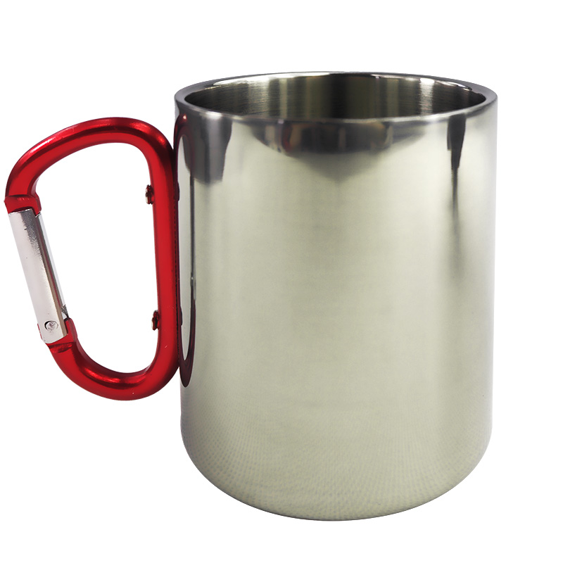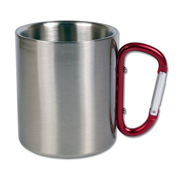 Stainless Steel with Red Carabiner Handle for Sublimation Mug, Engraving