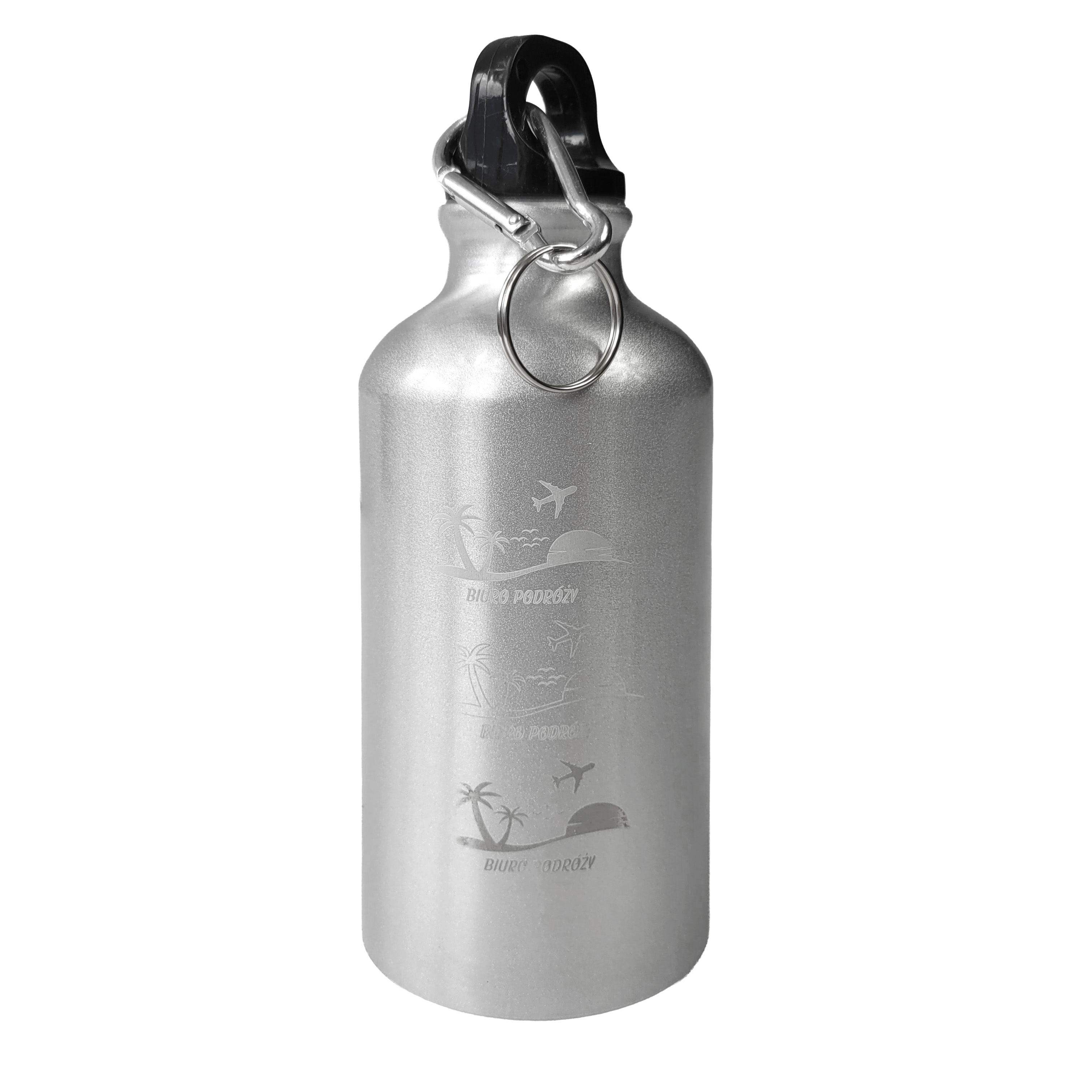 Metal bottle for sublimation with plastic lid and carabinier