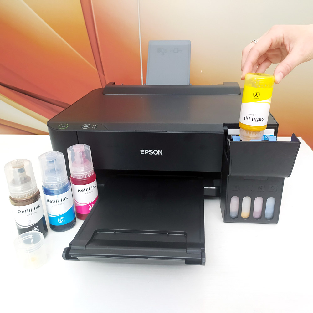 Epson 103 sublimation ink gives very good results in the form of high-quality prints on polyester-coated substrates. Black dye is refill to the proper empty cartridge.