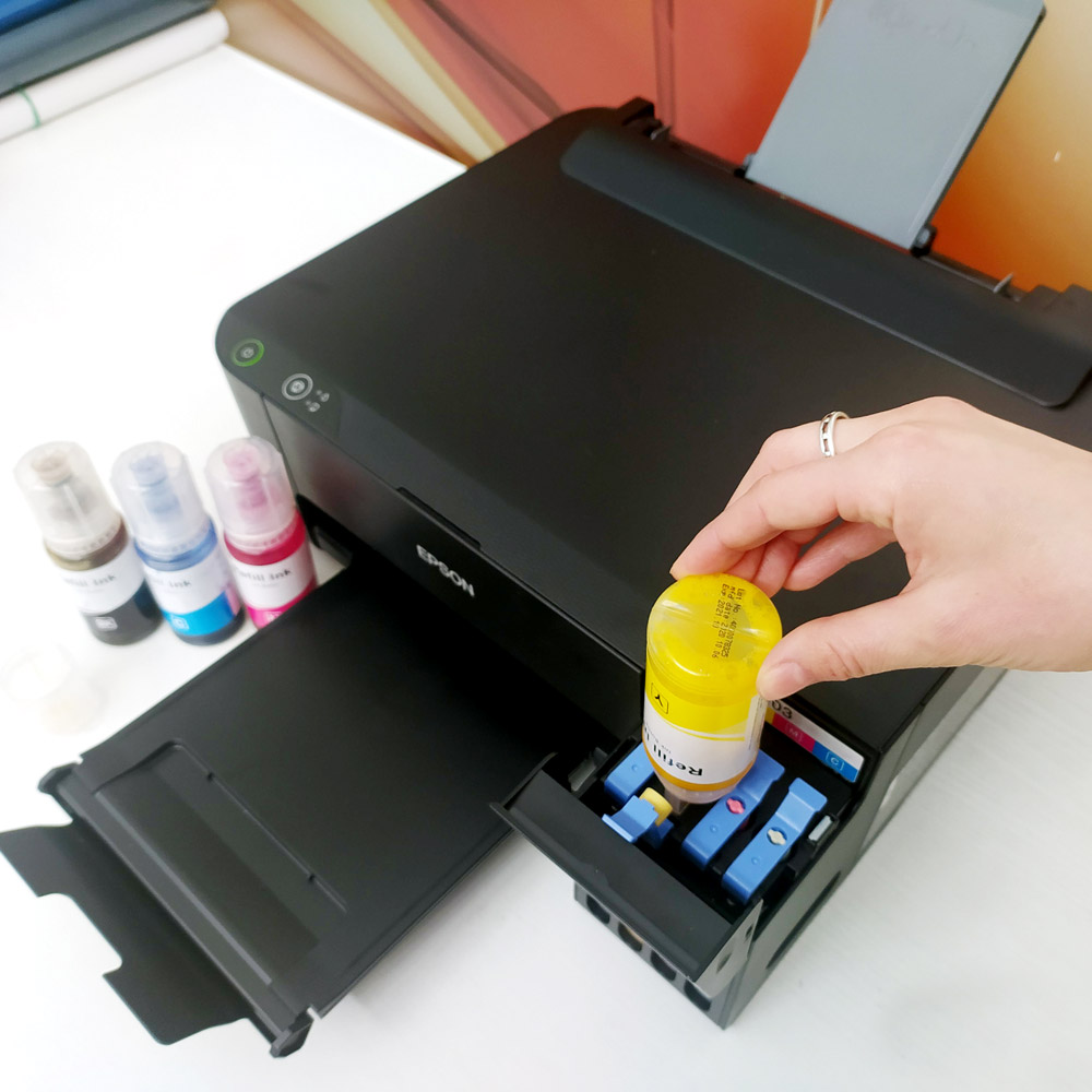 Epson 103 replacement sublimation inks are dedicated to the Epson L1110 sublimation printer. Specially designed plastic bottles with a convenient applicator ensure comfortable and clean ink replacement without the use of a syringe.