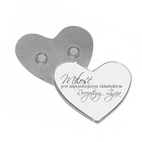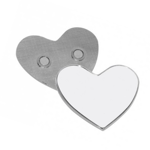 Sublimation metal fridge magnet. Shape: heart, dimensions: 5,5 x 4,5 cm, thickness: 2mm. Area for sublimation: 5,3 x 4,4 cm.