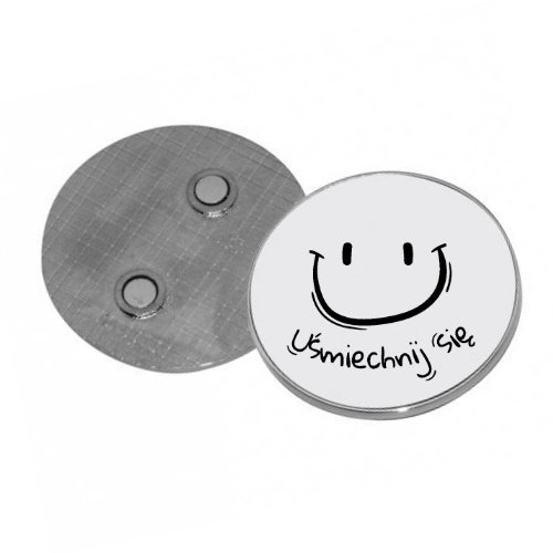 Sublimation metal fridge magnet. Shape: round, diameter: 5 cm, thickness: 2mm. Area for sublimation: 4,8 x 4,8 cm.